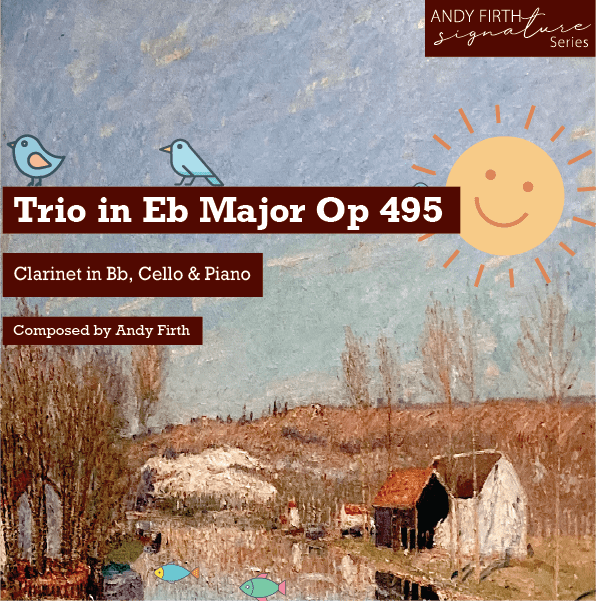 The theme is then passed to the clarinet, which restates and gently extends it before allowing the piano to engage more freely with the material. A subsequent section features the cello presenting the main theme broadly and in full, while the clarinet and piano bubble with rapidly moving triplet figures. This gives way to a more solemn, slower passage that offers a brief moment of calm and reflection.